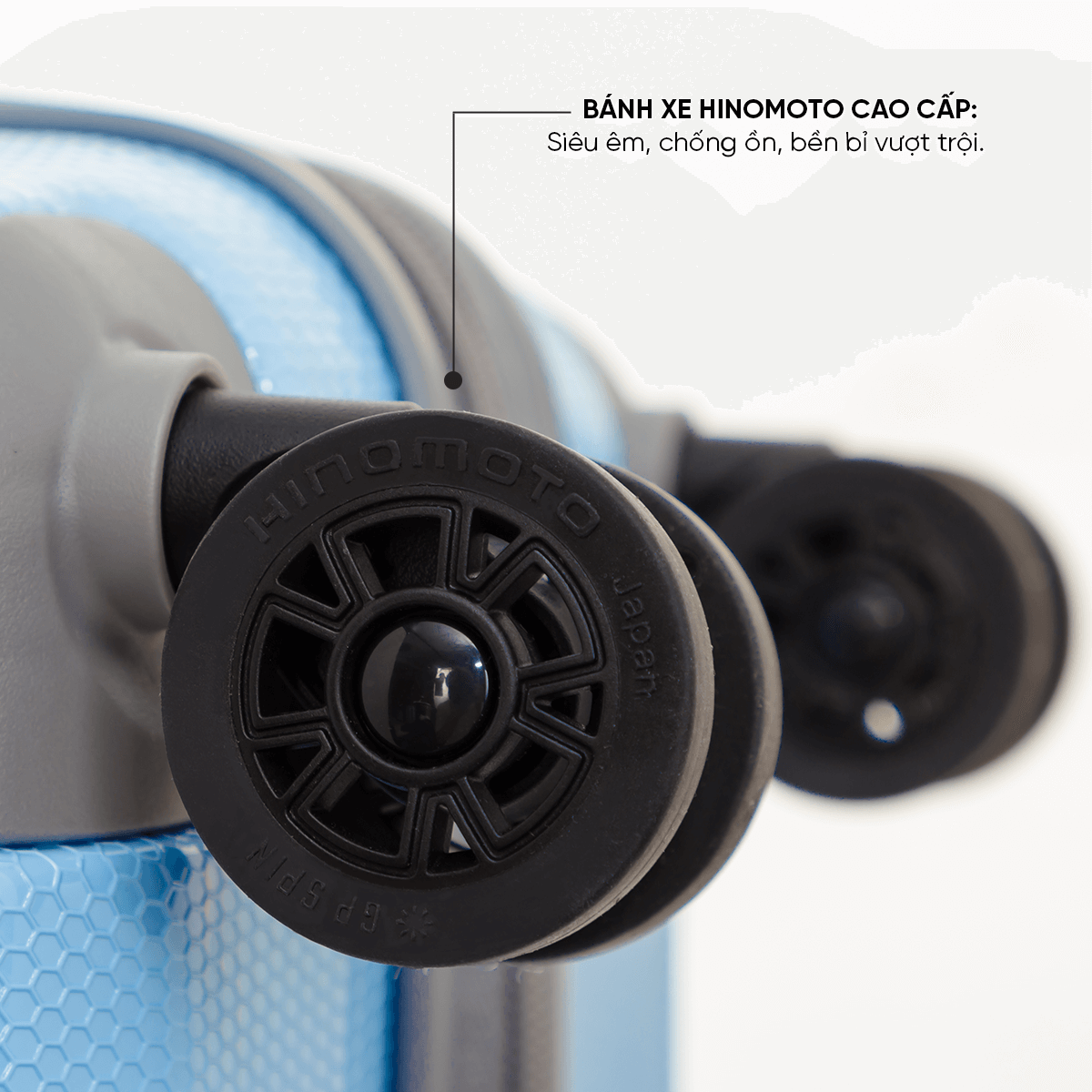 چهار چرخ دوبل دارد که ساخت هینوموتو ژاپن است با گردش۳۶۰ درجه که ویژگی این چرخها بدون صدا و روان بودن آن ها است.