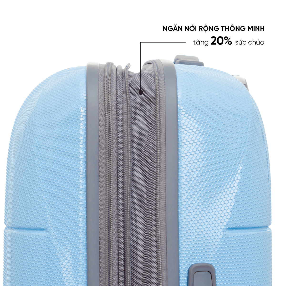 زیپ افزایش حجم دارد و درصورت لزوم تا بیست درصد به ظرفیت آن اضافه میگردد. زیپ دوبل و ضدسرقت از دیگر خصوصیات این چمدان میباشد.