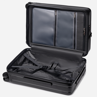 گوشههای ضدضربه: گوشههای چمدان که آسیبپذیرترین نقاط در جابجایی هستند، با لایهای قوسدار و تقویتشده (Arc-Shaped Protection) محافظت میشوند.