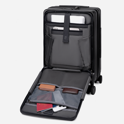 ۱. بدنه ارتجاعی و فوقمقاوم (Can Sit And Press) امنیت بار شما اولویت اول مدل GX002 است. بدنه این چمدان از متریالی با تکنولوژی بالا ساخته شده که قابلیت ارتجاعی دارد. این یعنی چمدان تحمل وزن بسیار بالا را دارد (حتی میتوانید روی آن بنشینید) و در صورت وارد شدن فشار ناگهانی در قسمت بار فرودگاه، به جای شکستن، انعطاف نشان داده و به فرم اولیه برمیگردد.