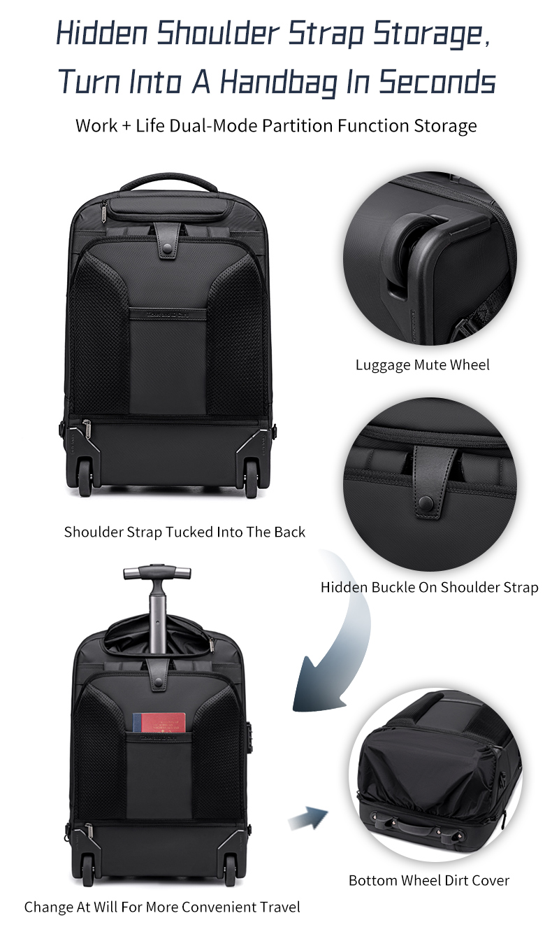 این کیف شیک و مشکی با طراحی 2 در 1، بهراحتی از یک کولهپشتی راحت به یک چمدان چرخدار تبدیل میشود. ایدهآل برای سفرهای کاری، مدرسه یا سفرهای شخصی، این کیف چندمنظوره به شما این امکان را میدهد که با راحتی و استایل حرکت کنید.