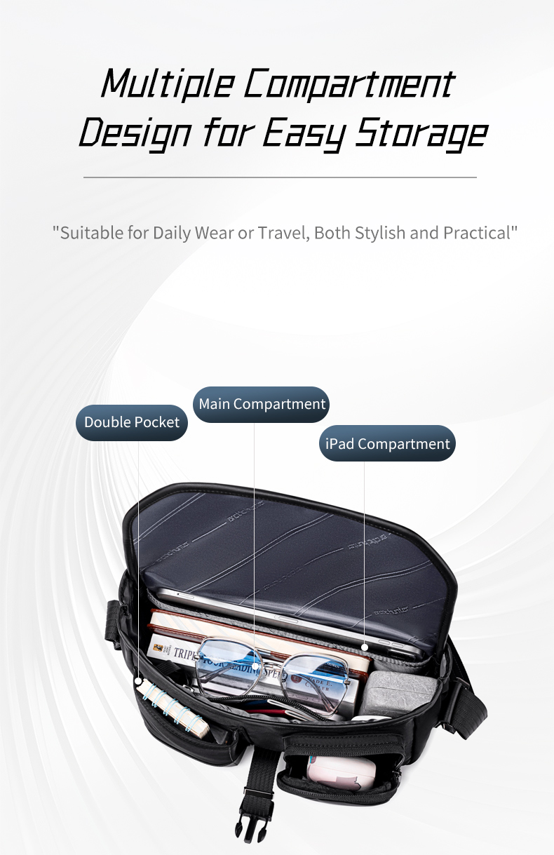 طراحی چندقسمتی حرفهای این مشکل شما را حل میکند. این کیف شانهای دارای چهار جیب جداگانه است که شامل ۳ محفظه زیپدار و یک جیب جلویی میشود، که فضای کافی برای نگهداری وسایل روزمره شما فراهم میکند.